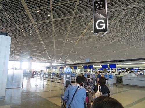 そして空港にはタイ航空のカウンターが開く前に着いてしまった。既にWEBチェックインを済ませているというと、チェックイン開始30分前から荷物預けはOKと言われ、ホッとする。このサービスは良い。すでに何人もの人が荷物を預けるために並んでいた。それにしても出発3時間前に着いてしまうとは、とほほ。それから長いこと空港で時間をつぶした。