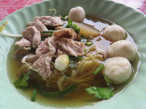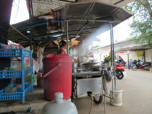 誰も観光客など通らない道に麺の屋台があり、そこで食べた。ある意味で、わざわざ観光地まで来て、どこでも行けるような屋台に行くのはどうかとも思うのだが、それが私の旅らしい気もする。おばさんも英語などできないが愛想がよく、好ましい。具もたくさん入っていて60bは安いのか高いのか。外で食べるのは暑かったが、それもまたよい。