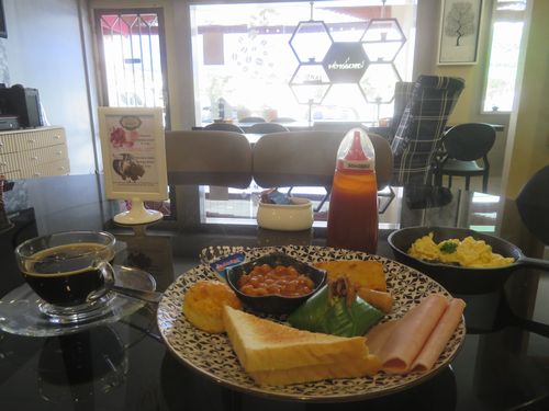 翌朝は雨が降っていた。7時半に朝食に行くと、ビュッフェではなく、セットメニューを選ぶ方式だった。そしてボリュームある熱々の朝食が出てくるのでこれもよい。何だかこのホテル、とても満足度が高い。バスは9時半に来る予定だが、念のため9時過ぎにはターミナルで待機せよ、とフロントが言うので、そうしようと思ったが、ものすごい雨が降っていて荷物を持って出られない。するとボーイが荷物を持ってくれ、ターミナルまで誘導してくれた。これもとてもありがたい。