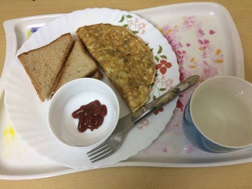 先生が持ってきてくれた朝飯は何とトーストとオムレツ。私はベジタリアンではない、と伝えた結果か、それとも実質的には未だ治療が始まっていないのか。とにかくおいしく頂く。そしてお茶は緑茶ティバッグ。お腹が一杯になると、なぜか眠くなる。昨晩あれだけ寝たのに、なぜだろうと思いながら、ベッドでごろりとしていたら、本当に寝てしまったらしい。ちょっと涼しいと感じていたので、そのせいかもしれない。