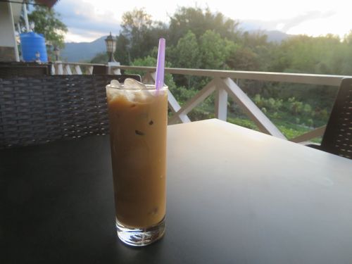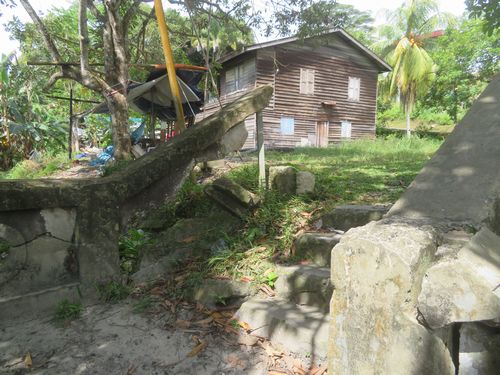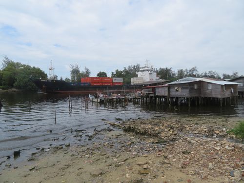 そこは地図で見ると、すでにブルネイ国境に近いようだ。なんでこんな所まで来てしまったのかと考えても仕方がない。まずは川辺の家で、ティータイムが始まる。ここで出された菓子や麺は、意外なほどうまく、子供たちも喜んでいた。少し日が傾いた川を眺めていると、小型ボートがやってくる。