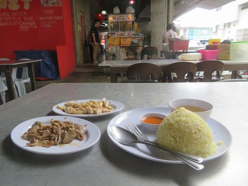 午後1時の日差しは強い。昼ご飯を探して歩いてみると、これまで見なかった大型海鮮レストランなどが目に入ってくる。一人旅の欠点は、海鮮などを食べることが出来ないことだろう。最後の食事もやはり市場脇の海南チキンライスだった。ここのチキンは大きく、かなりいい味出していた。