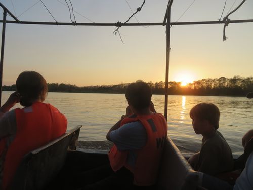 ボートは先ほどの家に戻る。そこには夕飯が用意されている。我々3人は黙々とそれを食べた。ドイツ人の子供たちも食べられそうなものを頬張っている。そして頃合いを見計らってガイドが合図し、またボートに乗る。中国人も乗せ、先ほど猿のいた場所へ戻っていく。