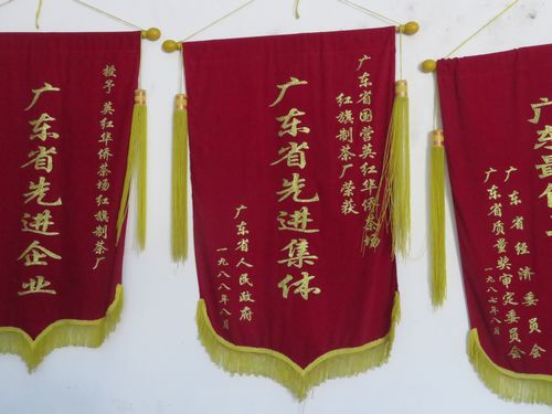 在我品味着英德红茶的香气时,忽见眼前的锦旗上写有“英德华侨茶厂”的字样。这显示了因79年爆发中越战争,大批越南华侨不得已回国,部分人来到此茶厂被收留的历史。当时正值改革开放初期,我眼前浮现出从越南归来的工人们制茶的忙碌身影。这么说来,难怪这附近的建筑,使用的多是在越南河内常见的独特浅米色。英德红茶的发展脉络中浓缩了新中国的多段历史。