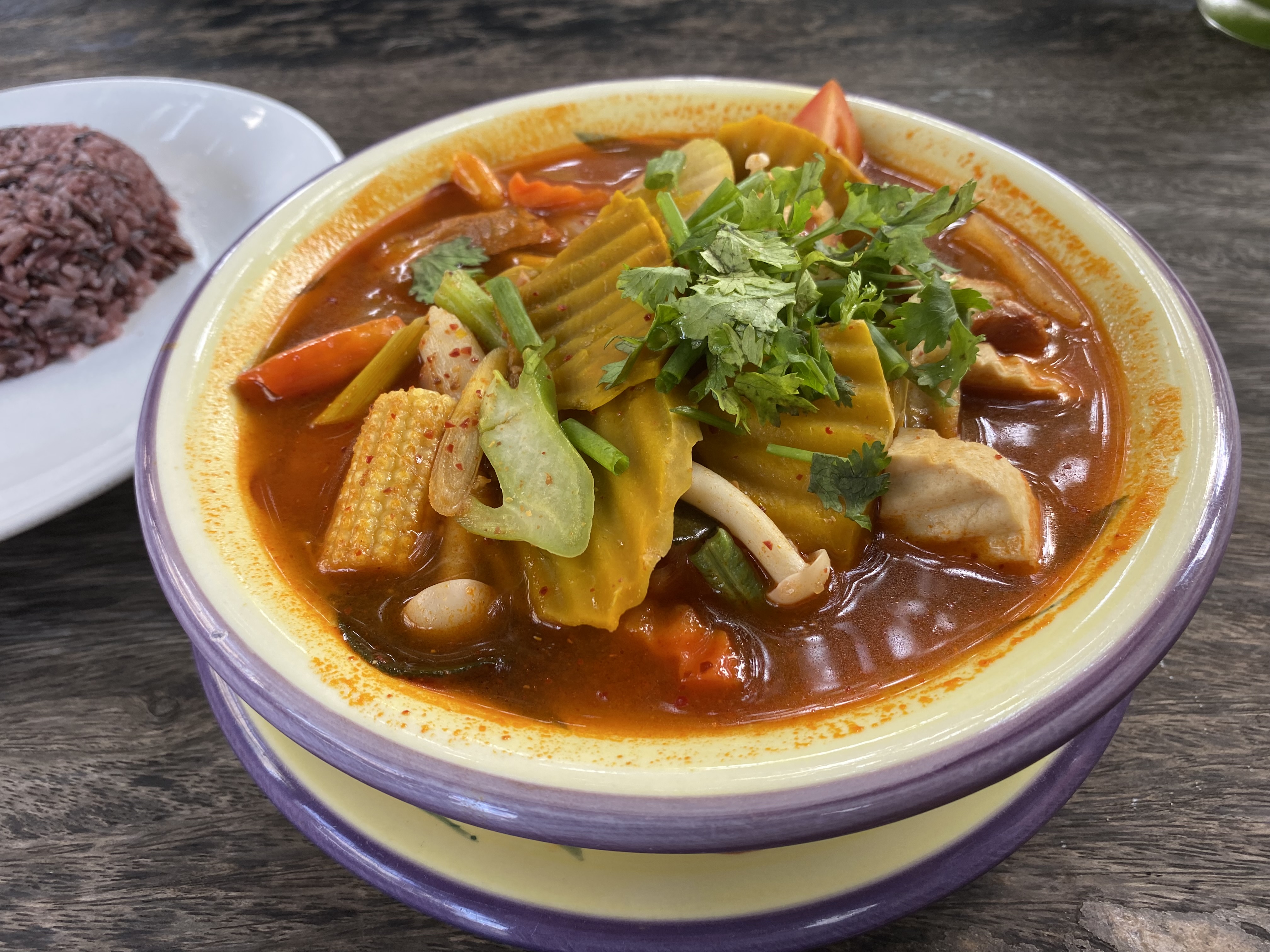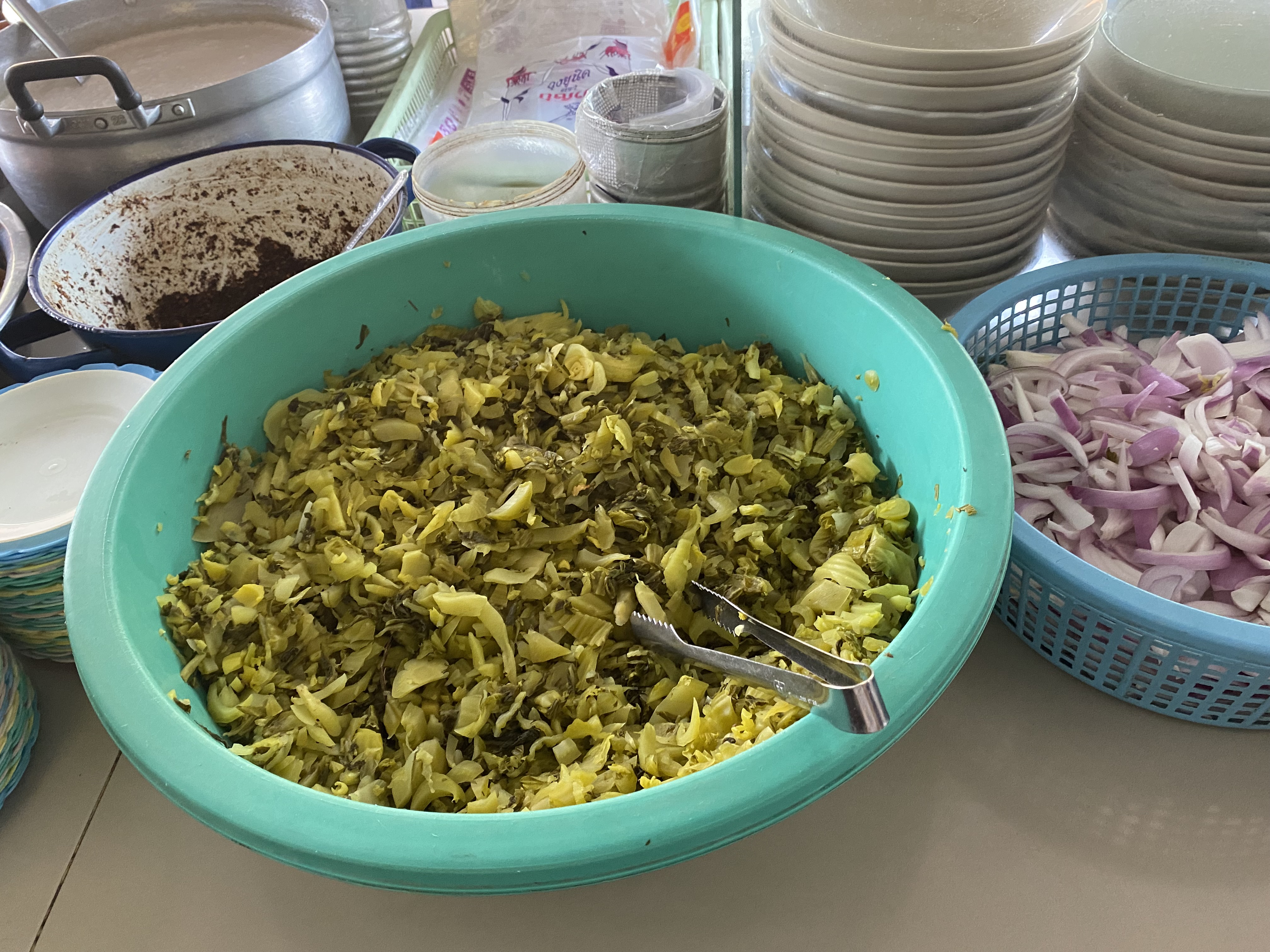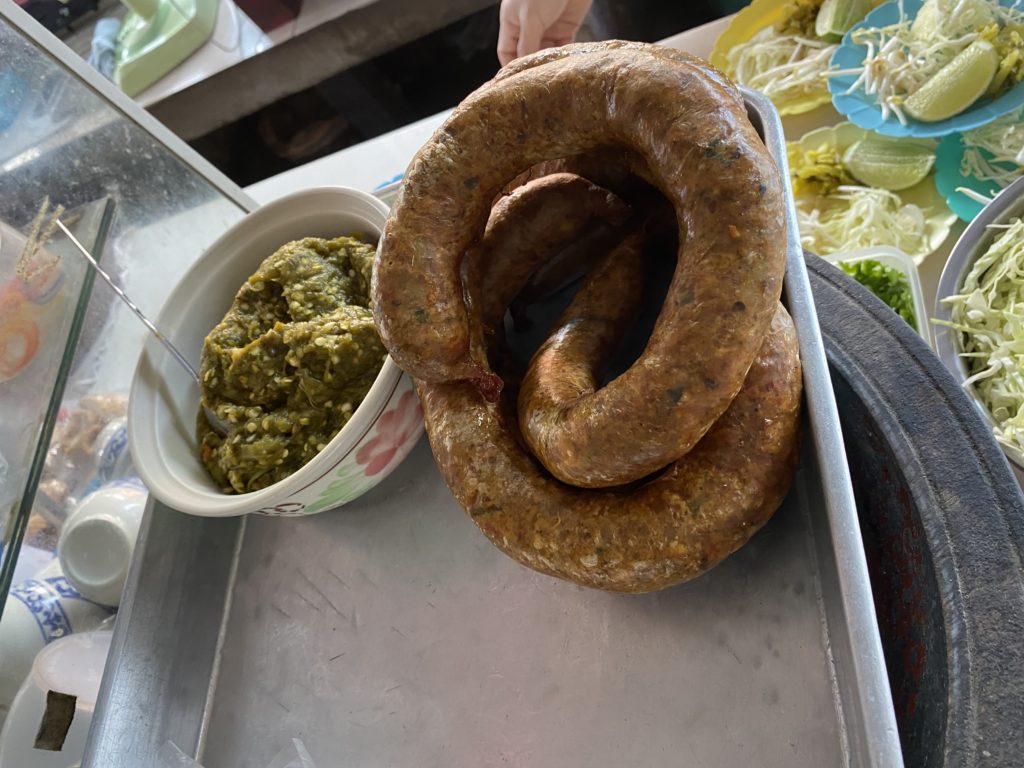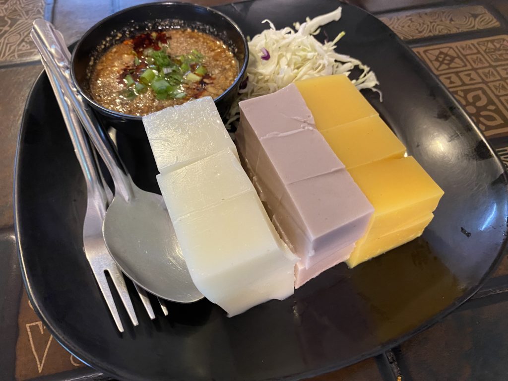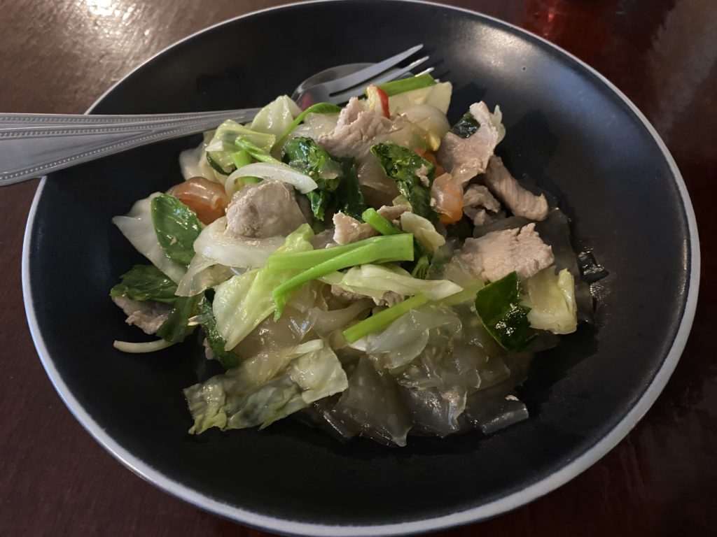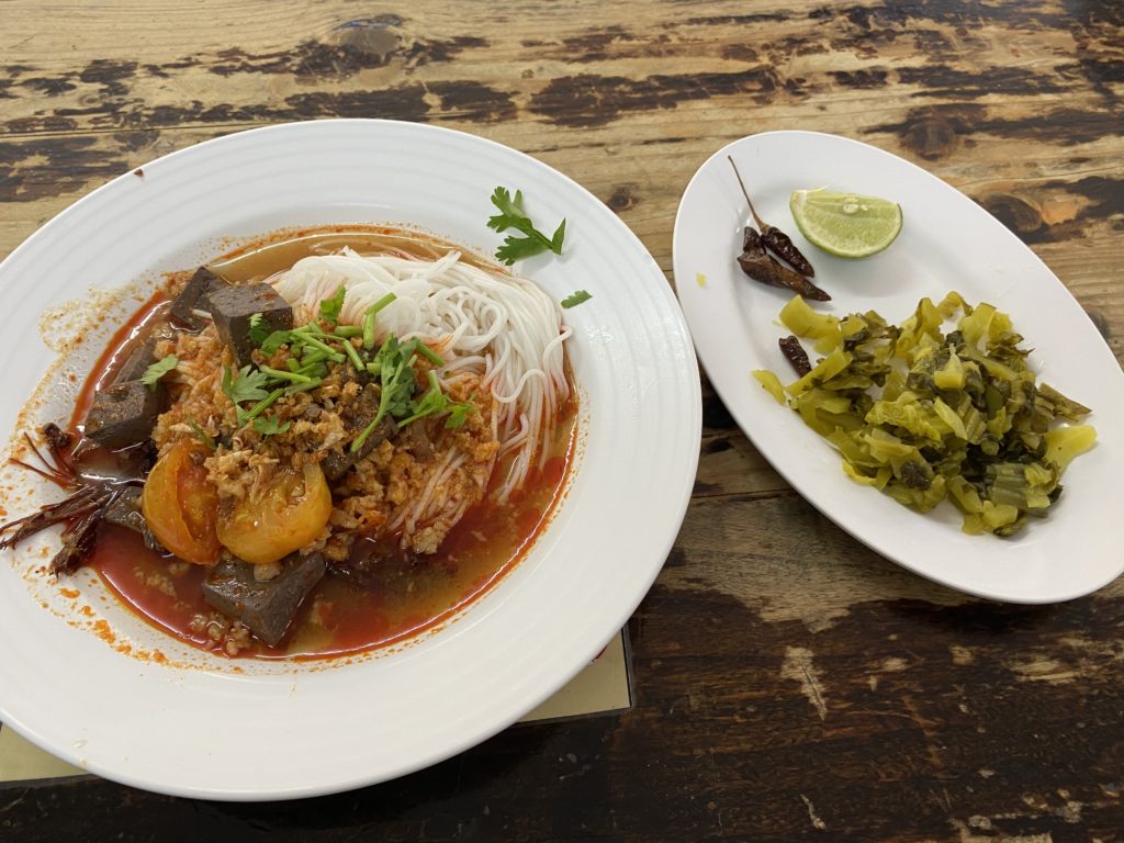 外環道路に建つ立派なお店、あの古いラムドアン1号店とはかなり雰囲気が違う。朝9時頃だが、お客は殆どいない。ゲーンホーと言ってみると、初めは怪訝な顔をされたが何とか通じた。メニューには英語があり、Lanna Mix Curryと書かれている。食べてみるとカレー味の春雨炒めかな。元々家の残り物を放り込んで食べていたらしい。だからMixなのか。