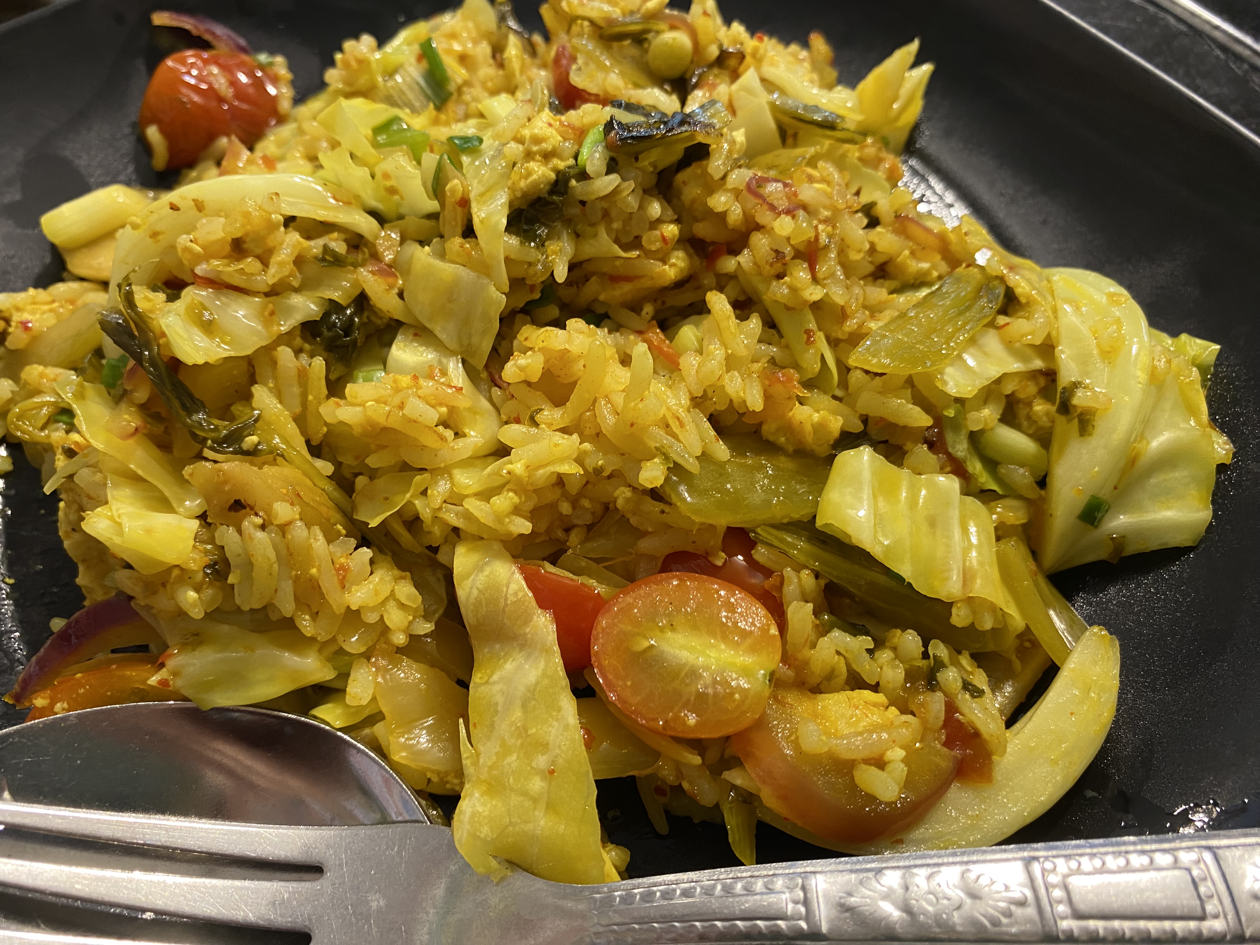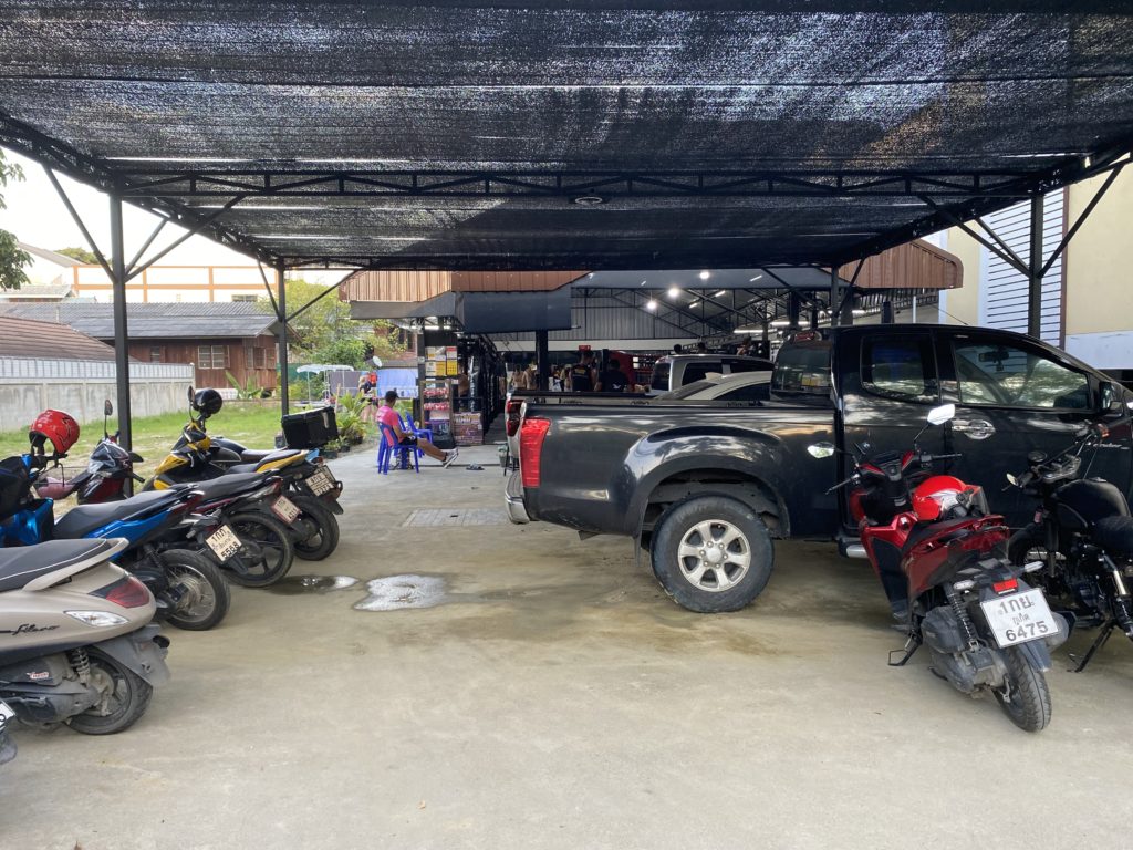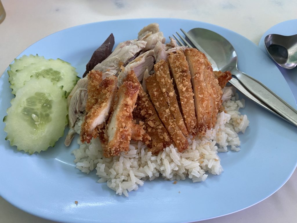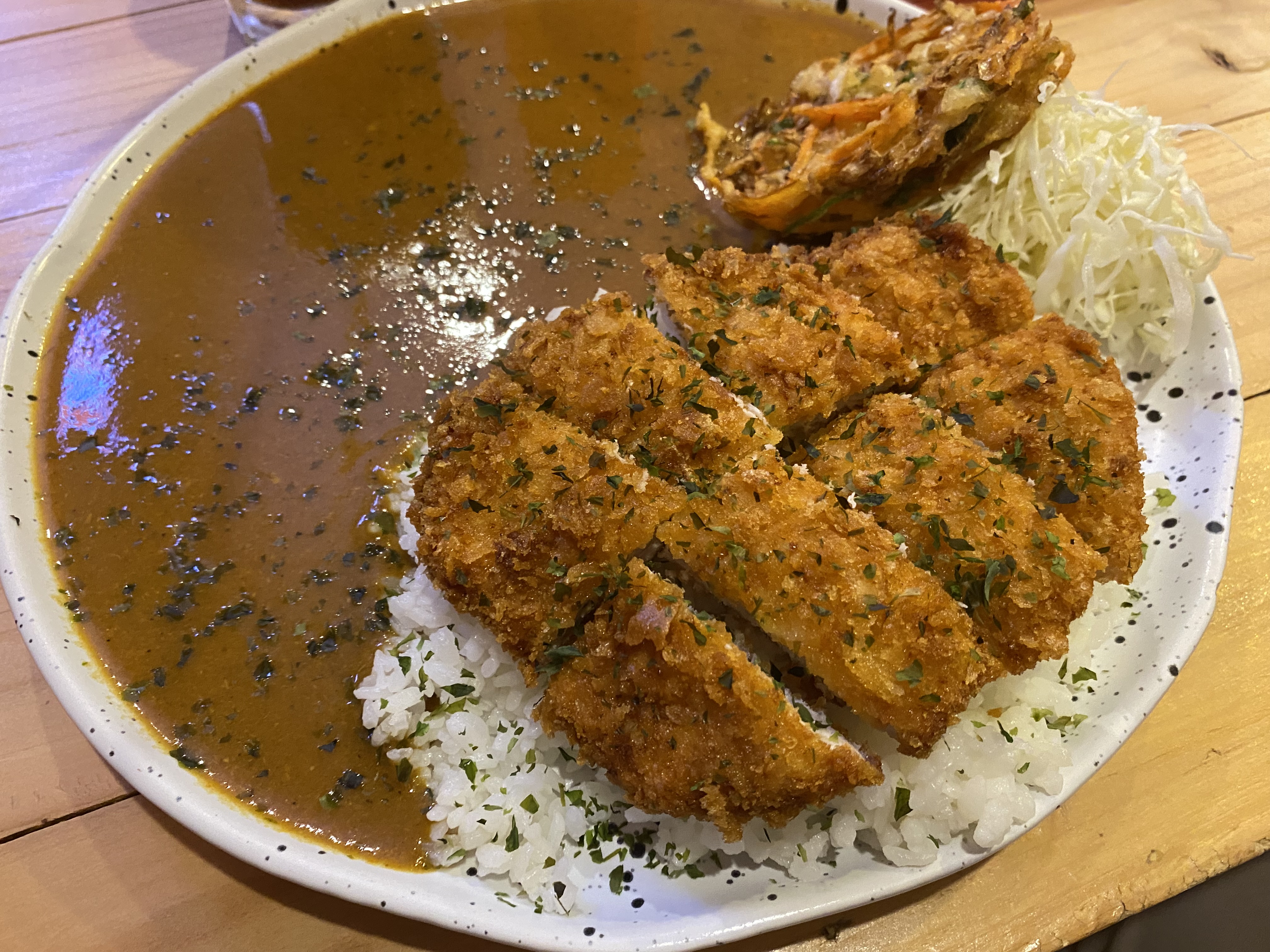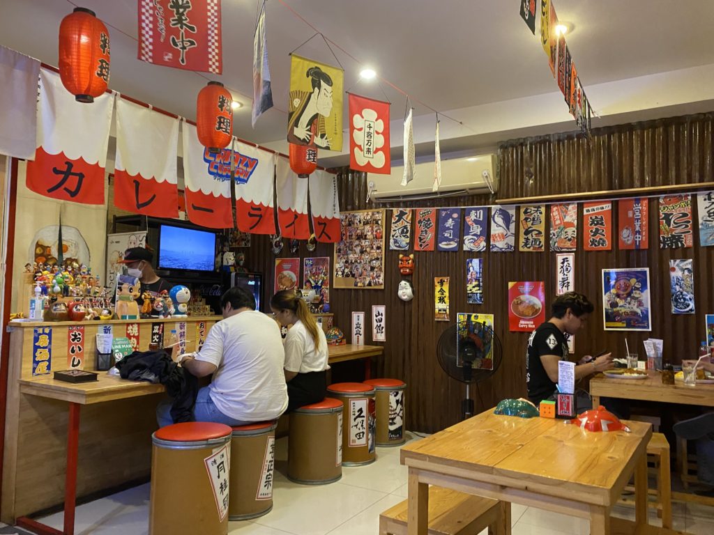 夕方また腹が減る。そう、いつでも腹は減るのだ。まだ行っていない店を開拓しようと歩いていると、和食屋が出現した。お客はタイ人一組しかいない。思い切って入ってみると、随分前からやっているようでメニューが古ぼけている。カツカレーがあったので注文する。85バーツで、ゴロゴロした芋の入ったカレーにカツが載っている。コスパは悪くない。