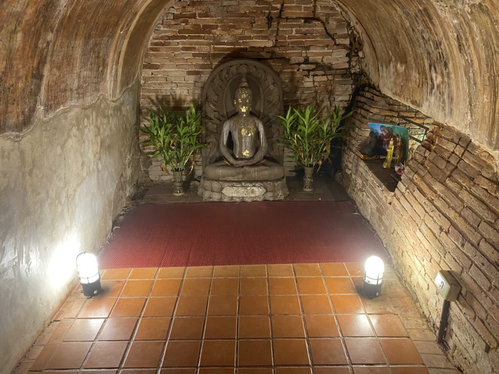 Mayaに近づくとそこに立派な寺があった。ワット・ジェーヨッドと書かれており、敷地がかなり広い。散歩にちょうど良いので歩いてみると、かなりの由緒があり、空間が心地よく、何となく楽しい。大仏の前に座り、しばし心を休める。こんな空間が近くにあるとは知らなかった。これからも時々散歩しよう。