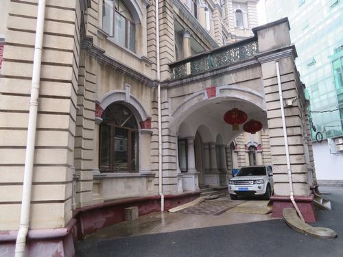 それから川沿いの通りを歩く。フランス租界のインドスエズ銀行ビルが何とも美しい。近くにはアメリカ領事館跡も見える。道を少し入るとロシア領事館跡があったが、何と取り壊しが始まっていた。我々が中を見ようとすると、守衛さんに止められた。歴史的建造物の表示があるにもかかわらず、壊してしまうのか。それが今の中国だろう。ロシア政府は何も言わないのだろうか。金の力が優先するのか。