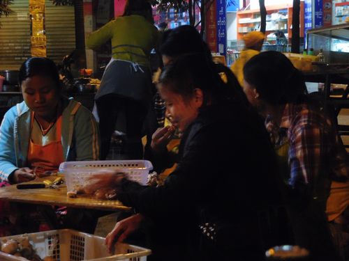 腹が減っていた。南国に夜のはずだったが、それでもダウンを着たまま出掛けた。涼しい。鍋屋の露店が出ている。よく見ると店員も客も皆がミャンマー人だった。すごい街だ。昼間は中国人が沢山いて、国境が閉まるとミャンマー人の街になる。ミャンマービルが出てくる。低い椅子に腰かけて、ミャンマー語が飛び交う。金だけは人民元だった。一体我々はどこへ来てしまったのだろうか。疲れと酔いでよくわからなくなる。