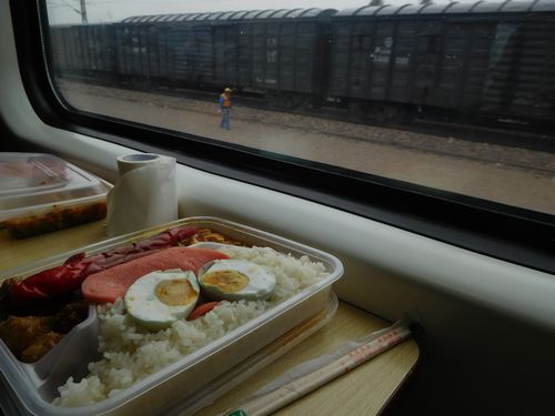 すぐに昼の時間になり、弁当を売りに来る。30元は結構高いが、ボリュームあり。腹にずっしり収まる。しかし車内は比較的静かだ。昔は暇だったこと、外国人が珍しかったことから、すぐに誰かが話しかけてきて、煩いぐらいだったのだが、今やスマホを見て過ごす人が多く、こちらは暇になってしまう。話し掛けられて面倒だと感じられることもあるが、誰も話し掛けて来ないのもどうだろうか。S氏はしきりに次の目的地を探している。
