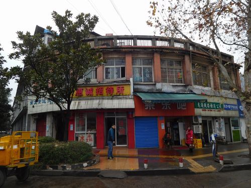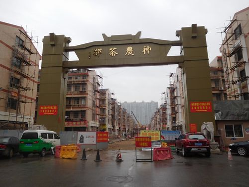 とにかく傘を差して歩き出す。駅近くは昔の街並が残っている。懐かしい感じがする。大きな市場もあるが、まだ店は開いていない。ずっと歩いて行くと、ようやく神農茶都という茶葉市場へ出た。だがこの市場、全面改修中のようで、真ん中の道が掘り返されている。9時過ぎたばかりで店も閉まっているところが多い。