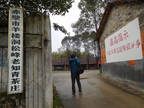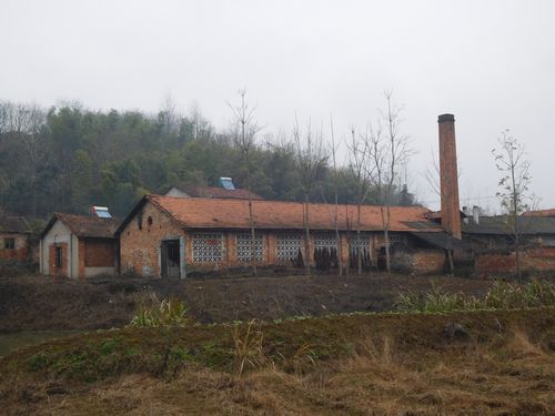 30分後、茶畑が見えた。かなり揃っているきれいな畑だった。羊楼洞茶業の基地と書かれていたが、休みなのか、大きな工場の門は閉まっていた。それでもここに茶畑があったことに、言い出しっぺとしてはホッとした。更には知っていくと、冬の畑が続く中に、その古びた茶工場はあった。