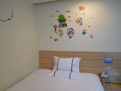 11:30に列車は何事もなく武昌に着いた。もう明日のチケットは買われているので、ここでの1泊は決定しており、駅前でホテルを探す。駅横に簡易ホテルがあるのを見つけて飛び込む。2段ベッドが入った3人部屋があり、238元。部屋に入ると、何とドラえもんの絵が貼ってある。ここは若者向けの宿だった。
