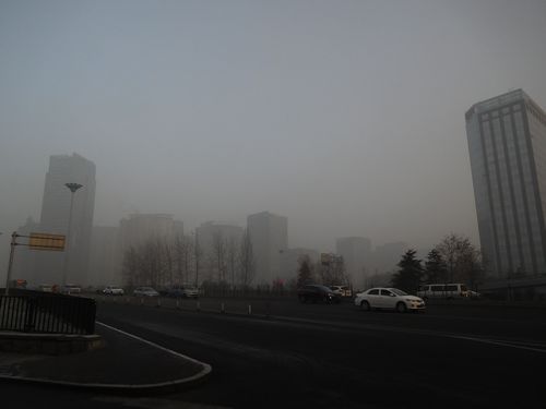 バスに乗っているとニュースが流れていたが、今日は大気汚染が深刻になり、黄色警報が発令されていた。確かに周囲が見えにくくなっており、これが恐ろしいPM2.5かと実感した。いつも冬場は煙っている感じの北京だったが、今は濃霧の中を走っている雰囲気となっている。身体に影響があるとのことだったが、こんな日が続けば心身とも病んでしまうかもしれない。