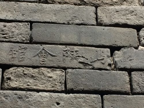 次に学校へ向かった。普通の学校に見えたが、その門の脇の壁が凄い。200年ぐらい前に建てられた同郷人の会館跡だという。李さんはこちらの研究で本も出しているので、実に詳しい。万里茶路に登場する山西商人と陝西商人、往時は二大勢力だった彼らが、共同で作ったのが山陝会館だった。学校の敷地内に入ると、わずかに舞台と鐘楼が残っており、その壁にはその名が記されていた。