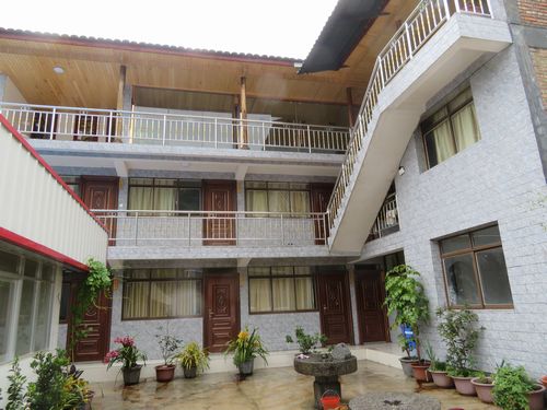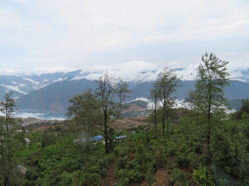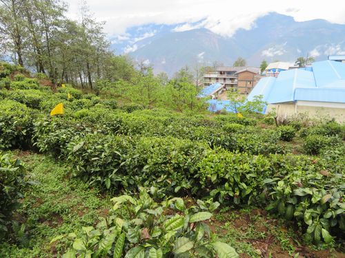 昼ごはんの後は、宿舎の屋上から外を眺める。雄大な景色が広がっている。反対側を見ると斜面に茶畑が見える。案内されてその茶畑にもちょっと足を踏み入れる。結構古い茶樹が植わっている。説明によれば、1950年代に植えられた大葉種だとか。この葉を使って紅茶を作るのがよいという。土壌もしっかりしており、確かの紅茶作りに適した場所のようだ。