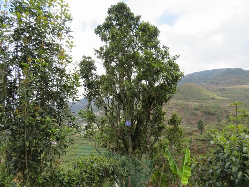 更に30分以上車に乗り、ようやくその場所に着く。茶畑が広がり、その間を歩いて行く。一応観光地のように整備はされている。小湾鎮茶王村と書かれている。ちょっと上って行くと、かなり背の高い木があった。表示があり、樹高8.3m、1000年以上の古茶樹となっている。但し大理茶とも書かれている。これはカメリアシネンシスではなく、タリエンシスということか。