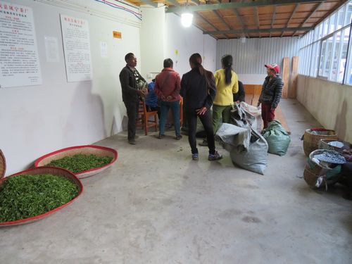 夕暮れ時、茶葉を担いだ近所の農民たちがやって来た。ここに茶工場があることは地元の農民にとって本当に貴重なことであり、また地元の若者に働く場を提供している。夕飯をここで食べ、車で送ってもらい、またホテルに戻った。今晩は外へ出て歩いて見た。10分ぐらい行くと、便利店があり、水などの飲み物も買えた。