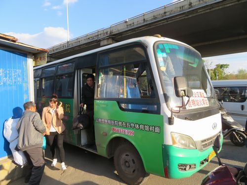また4時間ほどかけて、来た時の山道を通り、祥雲で休息をとる。もう慣れたものなので、気楽に過ごす。バスの車内ではほとんど寝ていた。午後にもう一つ楚雄というサービスエリアにも停まったが、何も食べずに過ごす。そして午後5時半頃、昆明西ターミナルにバスは戻った。先日の路線バスに乗ろうと思ったが、降りたところに、ちょうど昆明駅行のバスが停まっており、お客引きが行われていた。すぐに出発して、路線バスよりはるかに早いというが、料金は10元と高い。まあ試しに乗ってみる。