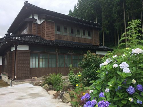 実は1回目と2回目のお茶会にはちょっと間があり、そこを利用して本日の宿泊先にチェックインした。そこは何と田舎の古民家だった。朝日町で保存している家で、宿泊可能ということで、Yさんとお知り合い、Tさんと私の4人が、この広い古民家に泊めてもらうことになったのだ。