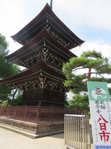 ほぼ端から端まで、少し上った丘の上まで歩いてしまうと、最後はかなりへばってしまう。駅近くの三重塔のある国分寺でしばし休む。それから駅前でお土産物を買い、3時過ぎの特急に乗り込む。高山は有名な場所だったので、もう少し、おーと思うものがあるかと思っていたが、今回は発見できず残念。