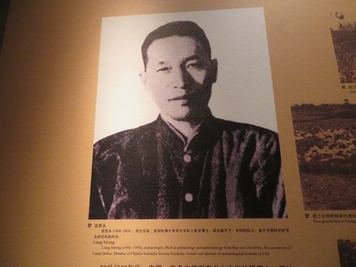 針路を北にとり、教えられた通りに、良渚博物館を目指す。道は本当に広く、車は極めて少ない。そして歩行者に対してとても親切。やはりここは中国ではない。北のはずれに博物館はあった。敷地は広い。正面入り口まで歩くのも大変だ。中に入ると参観者は少なく、ここもゆっくり見学できる。この辺の遺跡は1936年に発掘されたとある。発掘の歴史は意外と古い。その発掘者の中に梁思永という人物がいた。彼はハーバードを出た考古学者だが、何と日本に亡命した梁啓超の息子だった。長男で建築家の梁思成とは母親が違うらしい。この一家、調べればすごい人材を輩出しているのではないだろうか。因みに彼は1954年に50歳の若さで亡くなっている。