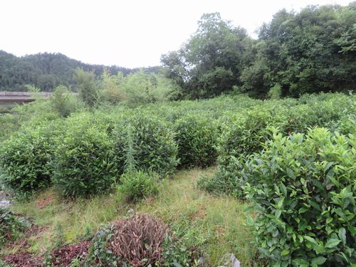 実は今日は山の中の茶畑を見学する予定になっていたが、ここ数日の雨で山道に土石流が発生。その様子が微信で配信されてきて、とても危険な状態だということで、残念ながら見学を諦めた。ちょうど雨が上がっていたので、代わりにこちらの茶荘の裏にある茶畑をちょっと見た。雨に濡れた茶樹は元気で、茶葉もすくすく伸びていた。
