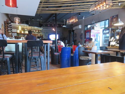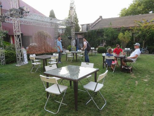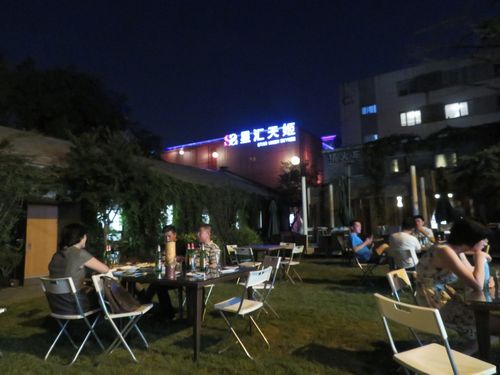 夜は知り合いの陸さんと久しぶりに会った。場所は胡同の中にある工場跡らしい。そこの庭がとてもいい感じ、白人さんが夕日を浴びながら食事をしていた。我々もそこでビールを飲みながら、かなり寛いだ。日が暮れてもきれいなライトアップがあり、実に良い雰囲気が醸し出される。北京も変わったのかな、とふと思う。