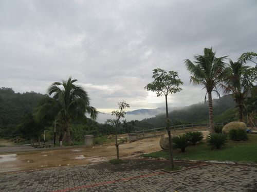 朝ご飯に行くと結構泊まっている人がいて驚く。粥などをさらっと食べて宿をチェックアウトした。もうほとんど残っていない茶畑をチラッと見た。今日は一気に海口まで帰り、空港から飛行機で広州に戻ることになっていた。雨の中、車は山を下り、来た時とは違う道を通っていく。昨晩の宿は三亜の方にかなり近いことが分かる。三亜は昔、息子と二人で遊びに行った思い出がある。