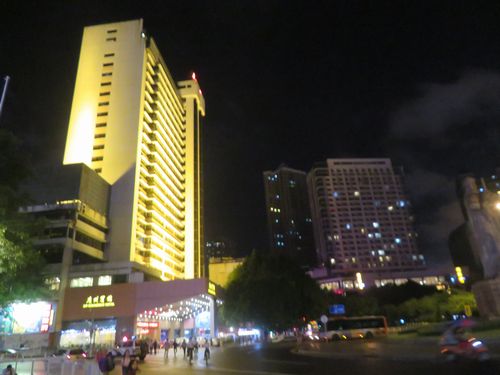 既に暗くなっていたが、ネオンがまぶしい。この広場自体はかなり明るい空間なのだ。地下鉄の駅があったが、腹が減ったので、その辺の店に入り、夕飯を済ませてから乗る。安いご飯もマズくはないのだが、何となく塩気が強い。海南島で自然の美味しいものを食べ過ぎたのか過敏になっている。