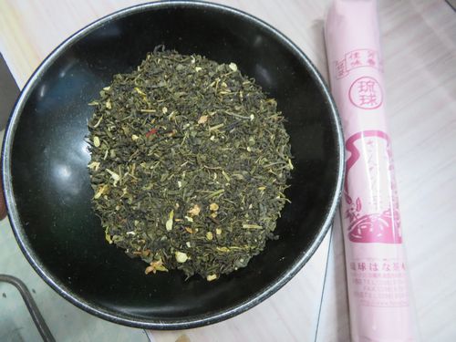 さんぴん茶はピンクの紙に細長く包まれているものが、昔からの包装だという。ただ中身は中国製だと。もっと上等なさんぴん茶もあったが、こちらも中国製らしい。そして清明茶を見せてもらうと、何となく中国で昔見た珠茶のような雰囲気があった。球茶はジャスミン茶の一種であったが、この清明茶はどうだろうか。