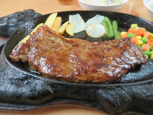 ジュンク堂から宿までは意外と遠いが、ゆいレールに乗るのも何なので、ゆっくり歩いて帰る。途中街の食堂を発見したので入ってみた。何とステーキが880円だというので注文する。サラダにスープ、ご飯までついて、そこに立派な肉が登場した。店員さんはブラジル辺りの人だろうか。今日も食べ過ぎてしまったが、それは沖縄が悪い!帰り道は風が冷たいのに、なぜか心は温かかった。