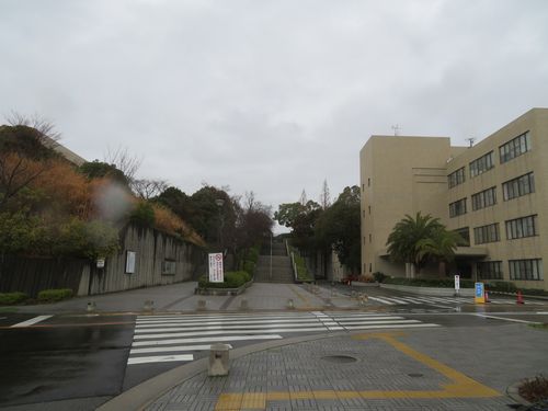 仕方ないので強風の中、傘をさして飛び出す。構内案内図を見てもよく分からない。何しろもらった所在地のメールは英語で書かれているので、その日本語が分からないのだ。困っていると後ろから声が聞こえた。Aさんがやって来たのだ。よかった。結構長い階段を上り、彼のオフィスに行く。
