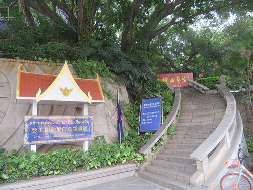 今朝は早めに目が覚めた。疲れてくるとこういうことがよくある。ホテルの朝食は、かなり混みあってはいたが、満足のいく物で、美味しく頂く。食べ過ぎだとは分っていても、付いている物は食べてしまう。悲しい習性だ。そのまま気持ちがよいので散歩に出た。この厦門賓館、実は後背部を含めてかなりの敷地がある。驚いたのは小高くなった場所にある古めかしい建物、タイの領事館がこの中にあったことだろうか。周囲にも古い建物などが残っており、歴史を感じさせる昔の一流ホテルだ。習近平もここで結婚披露宴をしたとネットにあったが、本当だろうか。