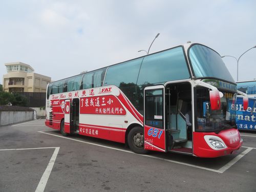 小型飛行機で1時間、金門に着く。遠東航空の乗り心地もサービスも分らないうちに到着だ。金門空港で指定カウンターへ行き、パスポートを預けて他の乗客を待つ。そして外に待つ専用バスに乗り込む。まずまずスムーズだ。しかしバスは真っすぐフェリーターミナルに向かわず、何と途中で停まる。