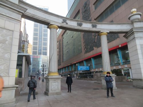 大連は天津よりは暖かかった。それでも朝は氷点下。外に出て大連駅を横切ると天津街に出る。天津から来て天津街か、と思ったが、ここは日本時代の繁華街。今はきれいな店が並んでいるが、日本の雰囲気は全く見られない。連鎖街とはかなりの違いだ。近くには古いホテルなどが並木に隠れて風情がある。