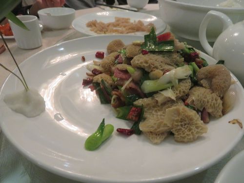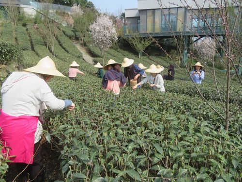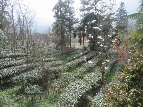 さらにバスは1時間走り、峨眉山に到着した。山の中に入っていき、峨眉雪芽と書かれた看板を目にする。有機茶園に桃の花が咲いており、何ともきれいな光景だ。建物もきれいで、ここがある意味で観光茶園であることが分かる。最初にちょっと茶工場を見学すると、メンバーは早々に茶摘み体験に繰り出したが、私はMさんと足の悪い鉈先生と残り、お茶を頂きながら、下の茶畑の活動を見ていた。40分ぐらいすると、摘まれた茶葉が運ばれ、すぐに鍋で炒め始めた。店長自ら炒めたが、その手つきは慣れてものだった。子供の頃からやっているのだという。