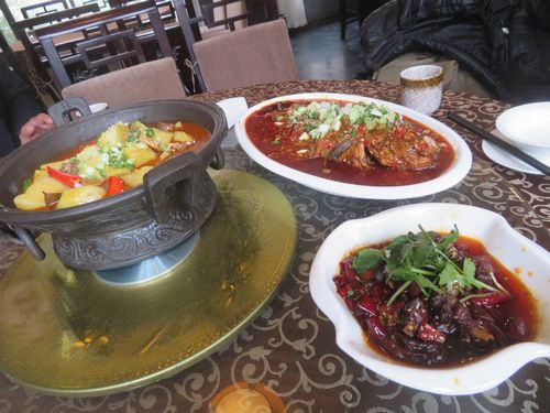 昼ごはんを食べに行く。ここも誰かが投資して、きれいに整備された場所。野菜も鶏も地元産でこりゃ美味い。その横にはかなり古い建物があり、茶館として使われていた。近くには中国のどこにでもある老街が観光化されている。この地は古くは2000年前の書物にも出てくる要衝の地、茶処であり、唐代の陸羽も茶経にこの地について書き残しているというが、今はその面影はない。