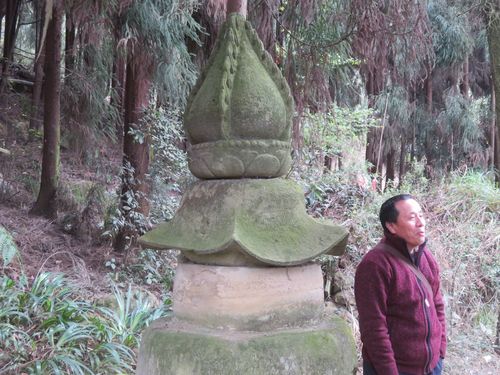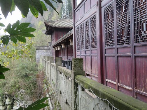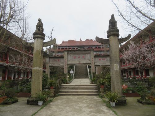 階段まで戻り、登り始めるときつい。先日の蒙頂山最古の茶園ほどではないが、既に膝を痛めていたので、上がるのは大変だった。何と陳さんは車で上がっていたので、ちょっと恨む?喘ぎながら寺の門に到達した時は、もう死にそうだった。しかもそこで終わりではなく、そこが寺の始まりだった。