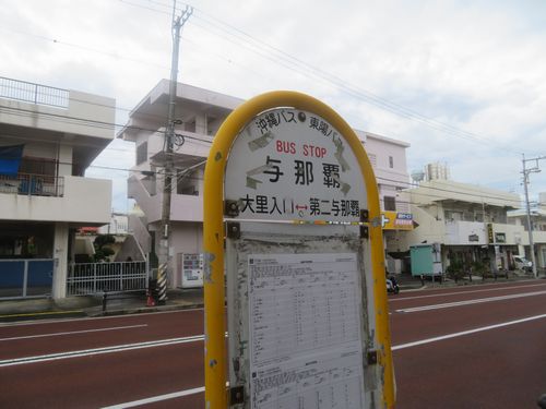 今日は与那原まで向かうのだが、昨日乗ったバスと全く同じバスに乗り込む。既に一度経験しているので気持ちは非常に楽になっており、緊張感はなかった。それがいけなかったのだろう、ふと考え事をしているうちに、目的地に到着したと思い、慌てて荷物を持ってバスを降りてしまった。ところがそこは『与那原』ではなく、何と『与那覇』という場所。与那まで一緒だったので、つい間違えてしまった。こんなこともあるのだろうか。