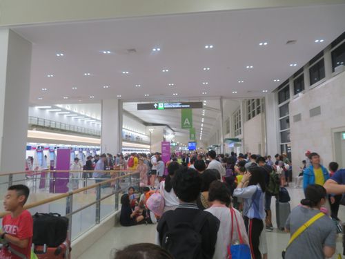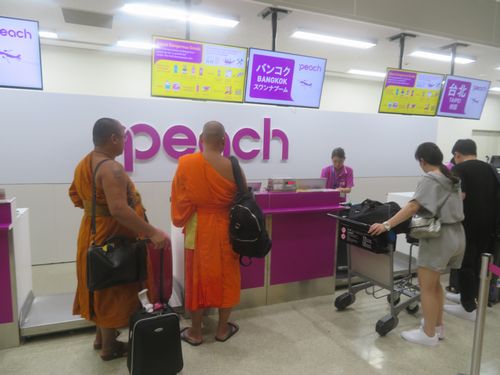 未だ出発まで2時間以上あるのに、既にピーチには長蛇の列ができていた。ただよく見ると、ほぼ同時刻に台北行きもあり、そちらが先にチェックインをスタートしたところだった。台北行きとバンコック行き、作業速度に明らかな差があった。台湾人はちゃんと準備しているが、タイ人はそこに行ってから書類を探し、荷物が重量オーバーしているからだ。沖縄ですでに、タイを感じる瞬間だった。いずれにしても日本人より外国人が圧倒的に多い。
