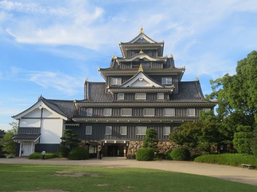1時間以上歩き回り、一度外へ出て、今度は岡山城へ向かう。お殿様の時代は、城から船で来たらしいが、今は立派な橋が架かっており、夕方の風景はきれいだ。城にも入ってみる。宇喜多家の歴史、今やアニメにも描かれているようだ。日本は城ブームでもあり、若い女性も見に来ている。