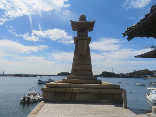 そこから街歩きに入る。古い商家の家並みがかなり残っている。港にはシンボルとなっている常夜灯がある。この辺はかなり風が強い。そこから丘を登っていく。鞆城跡と書かれており、石垣がある。ここからは鞆の浦がよく見える絶景スポットだった。天気が良く、幼稚園児が散歩に来ていた。