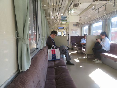 朝8時過ぎに岡山から電車に乗った。JR津山線で津山まで約90分、車窓からの眺めが秋の雰囲気だ。津山駅には一両電車が待っており、20分で林野という駅に着く。途中は田んぼや畑が多く、林も見られた。一両電車はワンマン車で、運転手の横に料金箱がある。確かにスイカなど使えないわけだ。同じ岡山県内だが、2時間10分以上かかった。