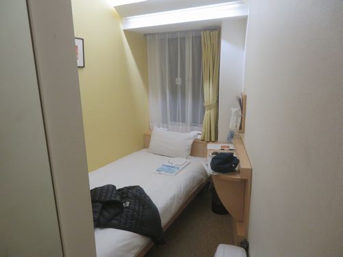 JRバスは名古屋駅脇に到着するから移動に便利だ。本日予約したホテルまで歩いて5分、ここは今工事中であり、料金は比較的安かったが、部屋は非常に狭かった。まあ、寝るだけなら問題はなく、テレビでもあれば退屈も凌げるので良い。電気ポットがなく、湯は給湯器で汲むのだが、紙コップなので持つのが熱くてちょっと面倒だった。