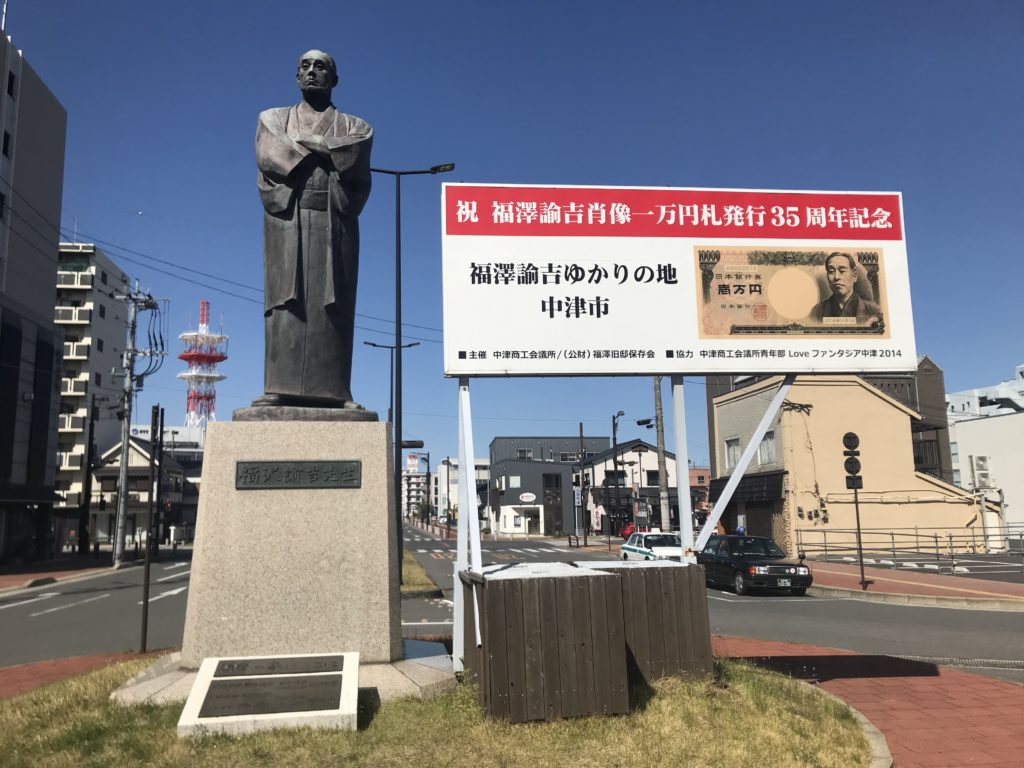 駅前には福沢諭吉の像が建っていた。駅前から中津市博物館まで歩いて行く。ここで中津の歴史を学ぶ。中津といえば黒田官兵衛だが、その後は細川が入っているのが面白い。立派な中津城の石垣も見られ、説明も受ける。それから中津城に登る。このお城、かなり格好いい。一番上から見ると、市内も、そして海もよく見える。如何にも官兵衛、海に近く情報を取り易かったらしい。関ケ原の合戦の情報もいち早く得て、九州から天下を狙おうとしたとか。