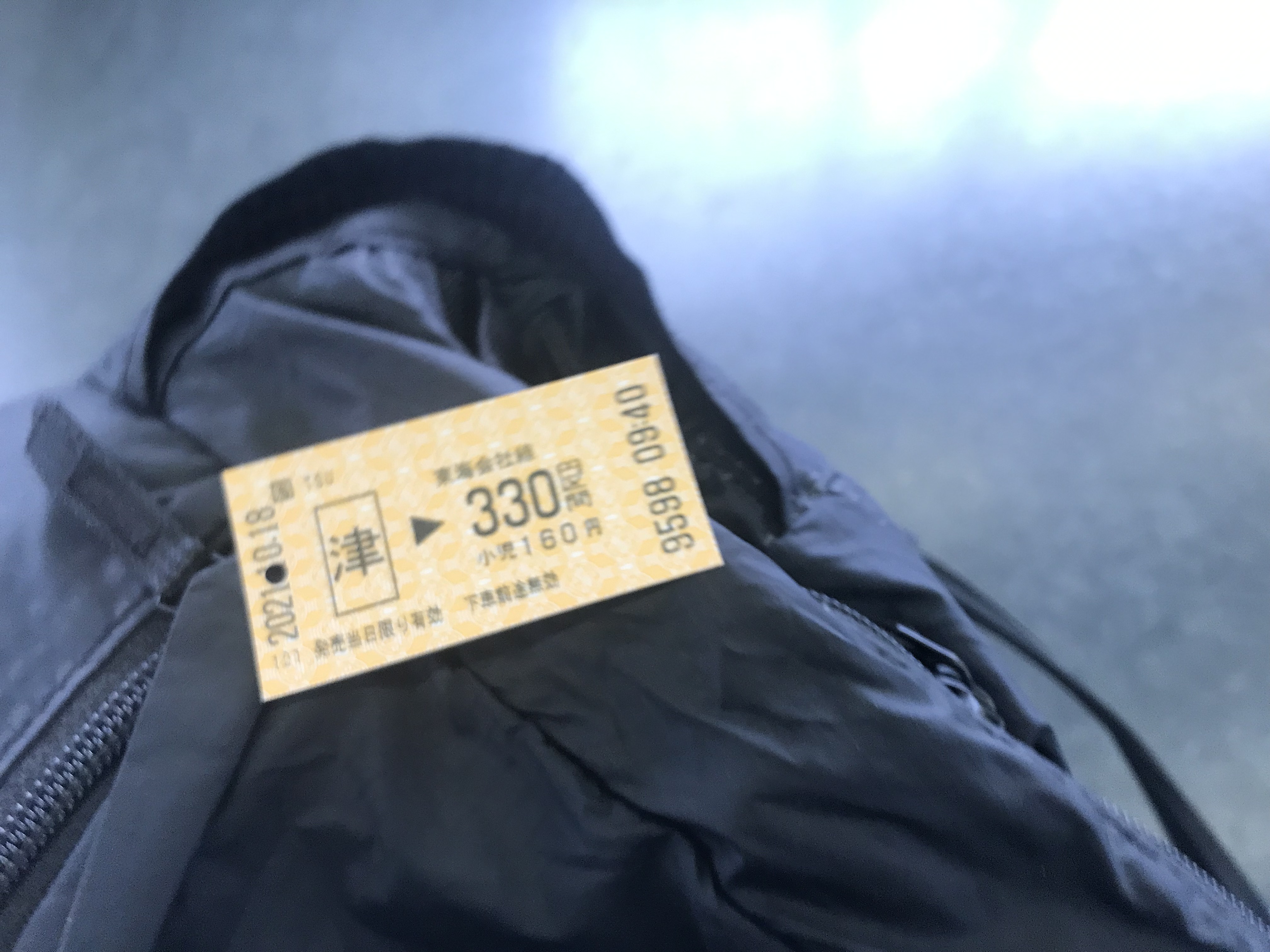 豊橋駅でJさんとも別れ、岐阜に帰省するKさんと共に新快速で名古屋へ向かった。1時間で名古屋に着き、近鉄に乗り換えて、三重方面へ。津へ行く電車、どれが一番早いのかと迷いながら松阪行きの急行に乗り込む。車内は意外に混んでおり、立っている人も多い。1時間後、電車は無事に津駅に到着した。