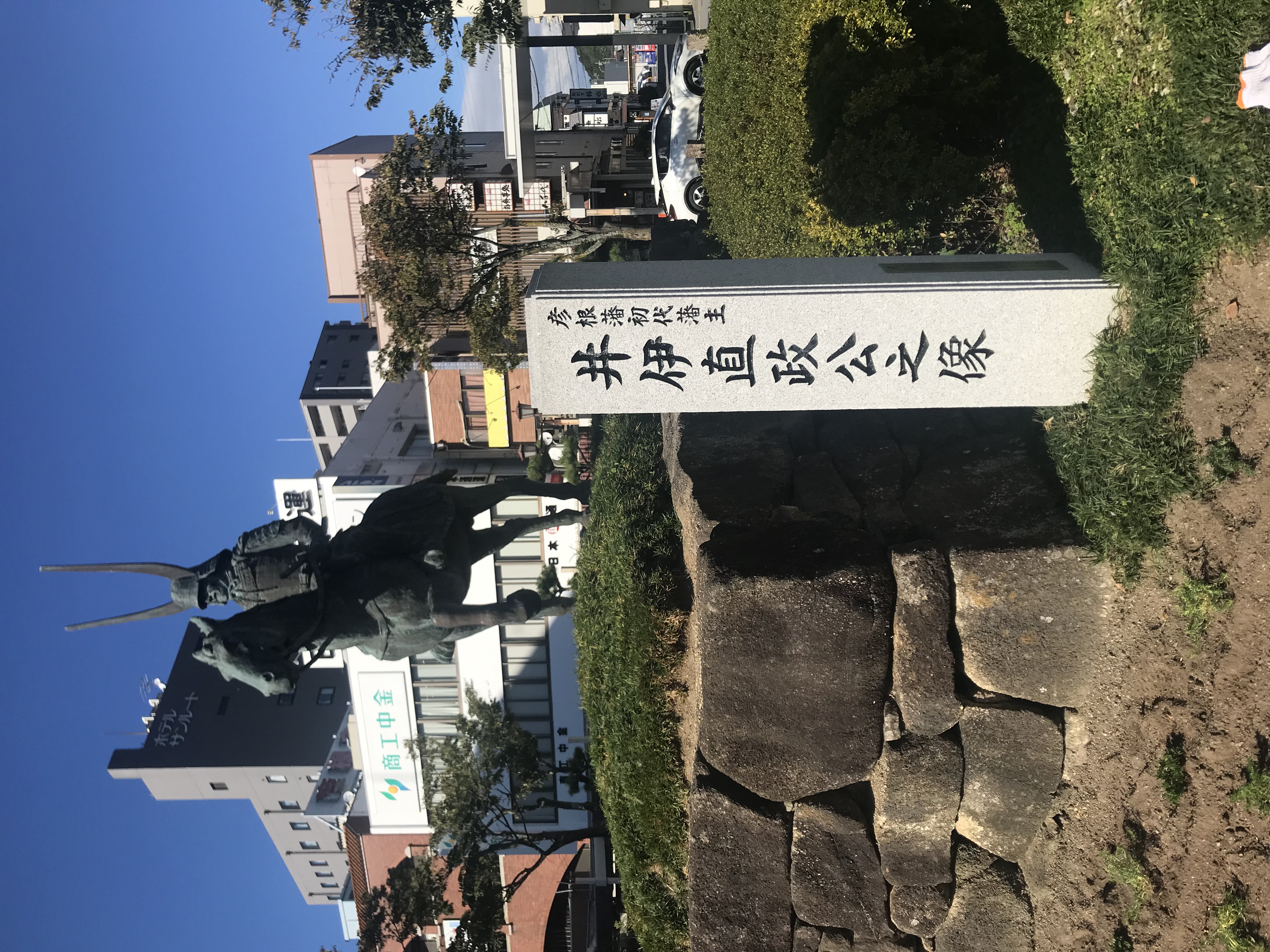駅前の像、井伊直政公、彦根藩初代、あの徳川四天王、井伊の赤備え、女城主直虎にも登場したな。ただよく見てみると、1602年彦根城築城途中に佐和山城で死去(42歳)、彦根藩になるのは彼の死後だった。それから200数十年、井伊家の所領は変わらず、そして幕末あの井伊直弼の代となる。