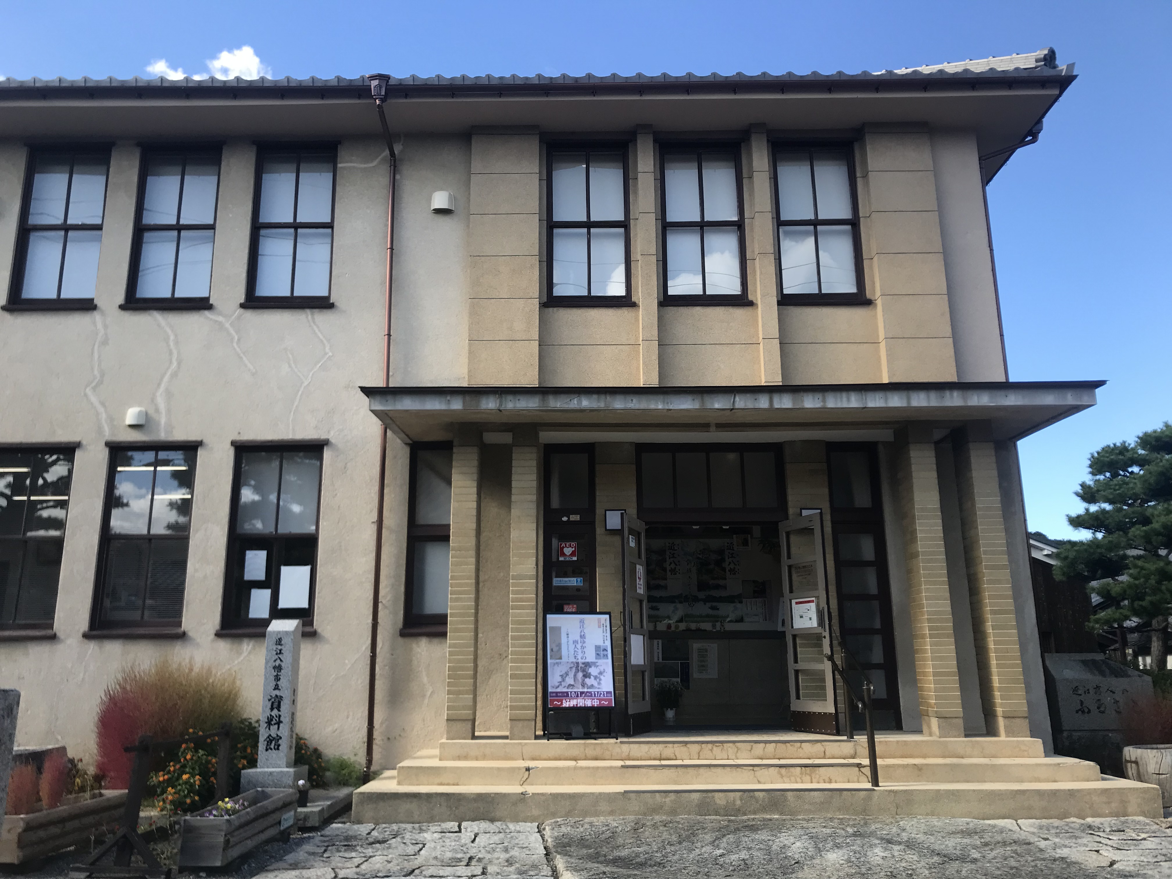 昔の図書館風の建物、資料館というのがあったので入ってみた。近江商人と茶について、何か展示はないかと探したが、特に見当たらない。一生懸命資料を見ていたら、話しかけてくる人物がいたので、茶について聞いてみると、『茶の歴史の観点で見る人がいないんですよ。大きな商家には必ず茶室があったのですが、誰も管理しないから昭和の中頃までにどんどん朽ちていきました』と説明してくれた。この方がここの館長さんだった。