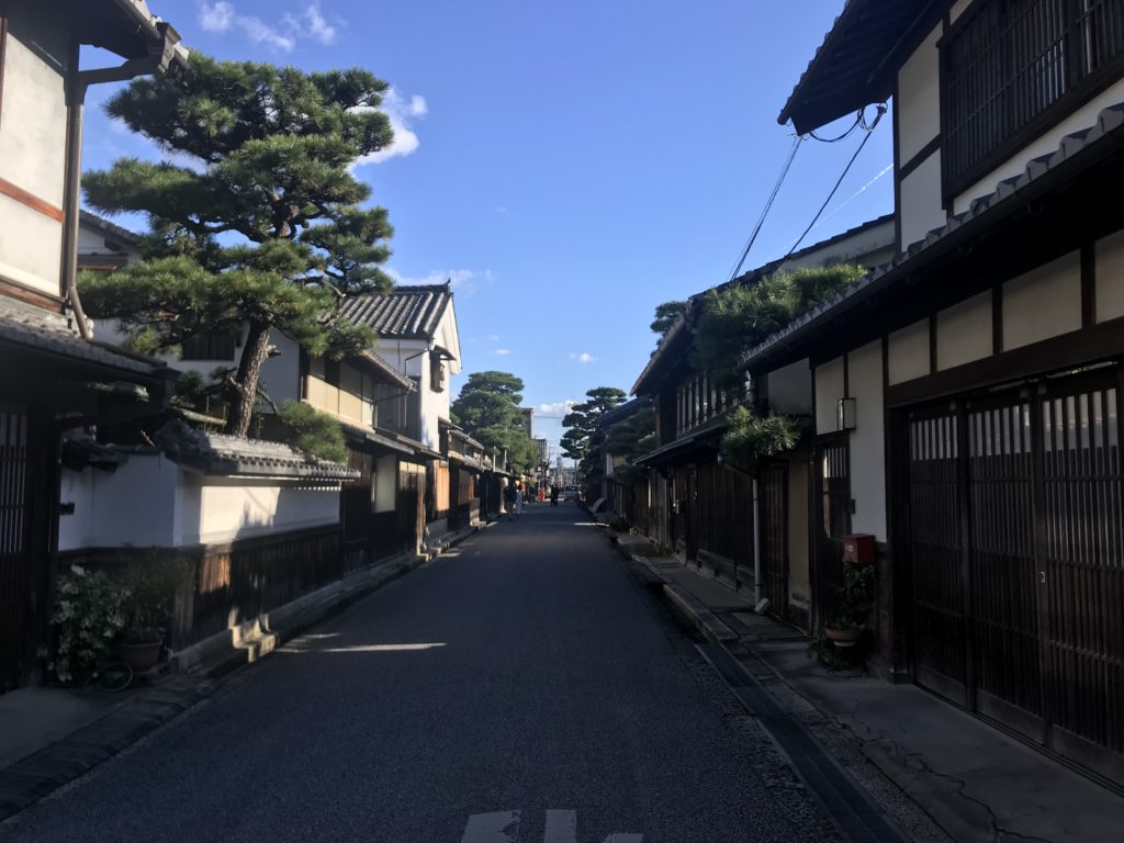 来た時と同じバスに乗り、また近江八幡まで戻る。既に結構歩いたので疲れてはいたが、天気も良かったので、そのまま近江八幡の街を歩いてみることにした。『近江商人発祥の地』の碑がある駅前から歩くと30分ほどのところに、歴史的風景地区があった。ここは江戸時代朝鮮通信使の通り道でもあったようで、朝鮮人街道という名前も見られた。